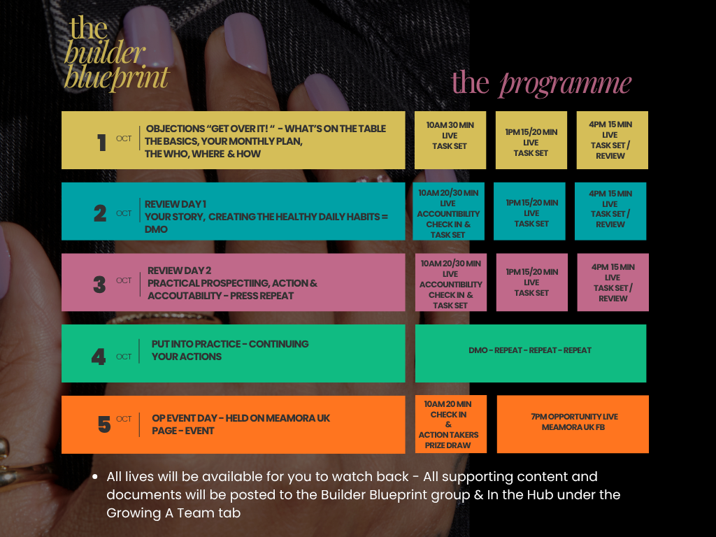 All training videos and content it on the Builder Blueprint Group Builder Blueprint – Workshop | Facebook