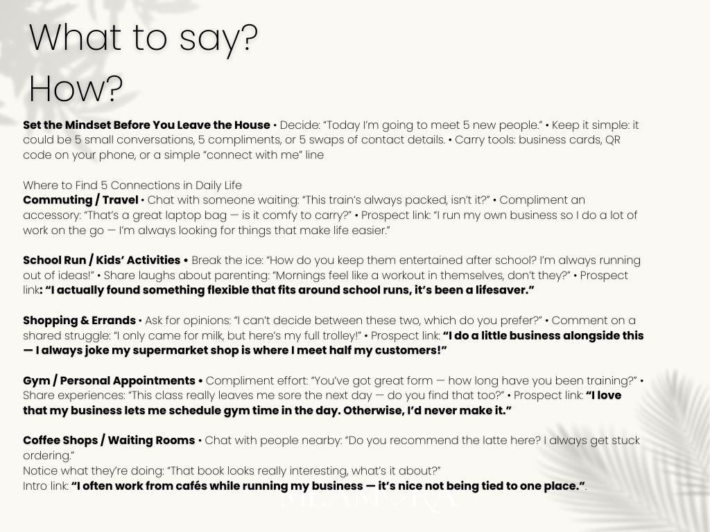 The more people you’re connected to, the more opportunities you’ll have to share YOUR MeAmora business.