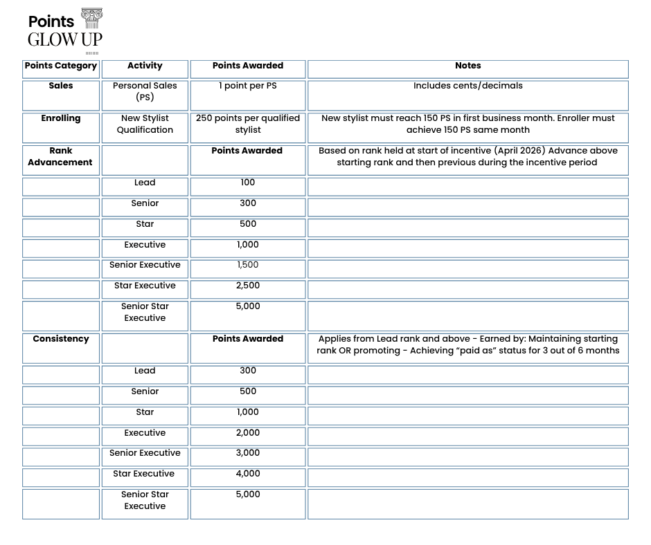 Every step you take in your business brings you closer. Whether you are building your personal sales, welcoming new stylists into your team, developing consistency, or advancing through the ranks, each action contributes to your overall progress.